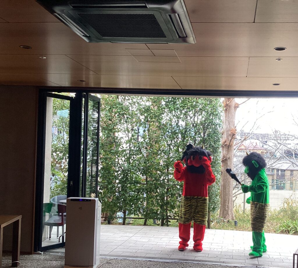 今年も可愛らしい2匹の鬼が登場し、賑やかに豆まきが始まりました。